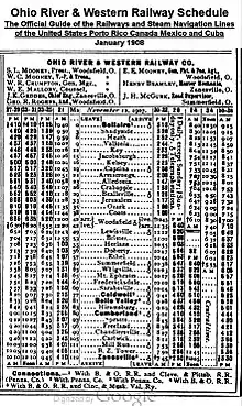 - ↑ Cass, Edward H. (1997). Hidden Treasures: The Story of the Ohio River & Western Railway.