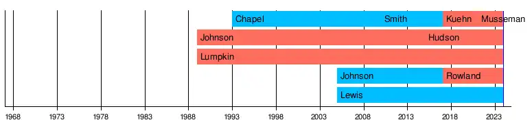 | 1 | William J. Musseman | 1972 (age 50–51) | March 4, 2022 | 2024 | Kevin Stitt (R) | Oklahoma |