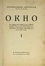 Okno Magazine (Russian: Журнал "Окно", literally "Window") was one of the Russia's leading literary magazines, founded in 1923 in Paris by Mikhail Tsetlin, the Russian émigré writer. Three paper-based issues were published in 1923 and in 1924. In 2007 Okno was re-established as a web-only magazine of poetry in Russian. It published Russian poetry, including prose poems and visual texts, translations of poetry from other languages into Russian, as well as literary heritage and essays/articles on poetry. Since autumn 2010 Okno was also publishing fiction, e.g. novellas, short stories and fragments of novels. The magazine was edited by Anatoly Kudryavitsky, a distant relative of Mikhail Tsetlin, and had some well-established poets, e.g. Konstantin Kedrov, Sergey Biryukov and Elena Katsuba, on the editorial board. Dmitri Bavilsky, the prominent Russian novelist and critic, joined the editorial team as the fiction editor in summer 2010. As per the magazine website, it stopped publication in 2014.