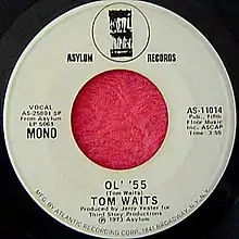 "Ol' '55" is a song by American musician Tom Waits. It is the opening track and lead single from Waits' debut studio album, Closing Time, released in March 1973 on Asylum Records. Written by Waits and produced by Jerry Yester, "Ol' '55" was a minor hit. It has been described as more conventional than Waits' later songs.[1] The title, "Ol' '55", refers to the singer's vehicle, almost certainly the legendary 1955 Cadillac Waits owned, although it could refer to other 1955 model year American cars.