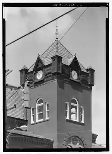 The courthouse building, built in 1896, designed in the Richardsonian Romanesque style by the architectural firm of Favrot and Livaudais.[2] A brick clock tower rises above the building.