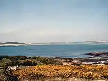 Blake arrived in April 1651 and set about invading the island of Tresco.[4] Taking the harbour of Old Grimsby in an amphibious assault on 18 April, he then bypassed the northern fortress of King Charles's Castle and marched south, intending to use Tresco as a base for taking the neighbouring island of St Mary's, approximately 2 kilometres (1.2 mi) away.[5]