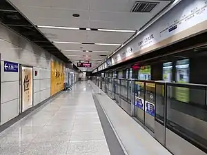 Olympic Stadium station (simplified Chinese: 奥体中心站; traditional Chinese: 奧體中心站; pinyin: Àotǐ Zhōngxīn Zhàn), is a station of Line 10 of the Nanjing Metro. It started operations on 3 September 2005 as part of Line 1's Phase I that ran from Maigaoqiao to this station,[1] On 1 July 2014,[2] with the opening of Line 10, the former branch of Line 1 from Andemen to this station became re-designated as Line 10.[3]