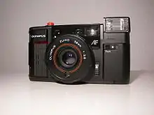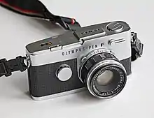 The first innovative camera series from Olympus was the Pen, launched in 1959.[10] It used a half-frame format, taking 72 18×24 mm photographs on a standard 36-exposure 35mm film cassette,[11] which made Pen cameras compact and portable for their time.