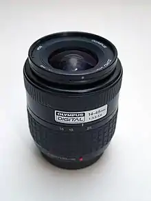 The Olympus Zuiko Digital 14-45mm F3.5-5.6 is an interchangeable lens for Four Thirds system digital single-lens reflex cameras announced by Olympus Corporation on September 28, 2004.