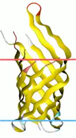 - ↑ Pautsch A, Schulz GE (Nov 1998). "Structure of the outer membrane protein A transmembrane domain". Nature Structural Biology. 5 (11): 1013–7. doi:10.1038/2983. PMID 9808047. S2CID 20529728.