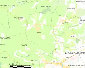 Oms is located in the canton of Les Aspres and in the arrondissement of Céret.