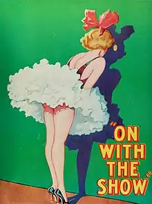 On with the Show! is a 1929 American pre-Code musical film produced by Warner Bros. Filmed in two-color Technicolor, the film is noted as the first all-talking, all-color feature length film, and the second color film released by Warner Bros.; the first was the partly color, black-and-white musical The Desert Song (1929).[5][6]