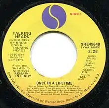 "Once in a Lifetime" is a song by the American new wave band Talking Heads, produced and cowritten by Brian Eno. It was released in January 1981 as the lead single from Talking Heads' fourth studio album, Remain in Light (1980), through Sire Records.
