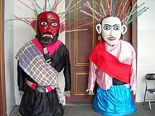 Ondel-ondel is a large puppet figure featured in Betawi folk performance of Jakarta, Indonesia. Ondel-ondel is an icon of Jakarta. Ondel-ondel are utilized for livening up festivals or for welcoming guests of honor, usually in pairs. Ondel-ondel is one of a few Indonesian folk performances that has survived modernization and is still being regularly performed.