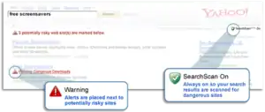 On May 11, 2008, Yahoo introduced SearchScan. If enabled this add-on/feature enhanced Yahoo Search by automatically alerting users of viruses, spyware and spam websites.[24]