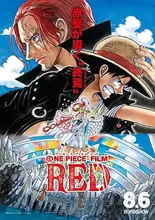 One Piece Film: Red is a 2022 Japanese animated musical fantasy action-adventure film directed by Gorō Taniguchi and produced by Toei Animation.[3][4] It is the fifteenth feature film of the One Piece film series, based on the manga of the same name written and illustrated by Eiichiro Oda.