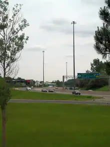 On November 30, 1990, the Northfield Drive interchange was fully opened to traffic, eliminating a traffic signal from the northern end of the Conestoga Parkway.[17] The speed limit on the parkway was lowered from 100 km/h (62 mph) to 90 km/h (56 mph) on January 10, 1994 following numerous cross-median collisions.[18] In 1998, during the mass downloading of provincial highways to lower levels of government, the majority of Highway 86, from the Northfield Drive interchange to Amberley, was decommissioned.[19] The Regional Municipality of Waterloo subsequently designated the section north from Waterloo to Elmira as Regional Road 85. Consequently, the remaining section of Highway 86, which exclusively followed the Conestoga Parkway, was renumbered as Highway 85 during the spring of 2003 to align the numbers and aid navigation.[20][21]
