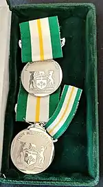 The Queen Elizabeth II Ontario Medal for Good Citizenship is a provincial medal of merit awarded in the Canadian province of Ontario. It was established by the Government of Ontario in 1973 to recognize people who, through exceptional long-term efforts, have made outstanding contributions to the well-being of their communities and whose assistance is given without expectation of remuneration or reward. Originally established as the Province of Ontario Medal for Good Citizenship, the award was renamed in 2023 to honour the late Queen Elizabeth II.[1] Typically, eleven to thirteen medals are awarded each year.[2]