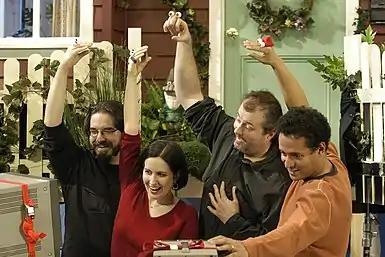 Tim Lagasse was chosen to play Oobi because of his previous bare-handed puppetry in A Show of Hands, a series of short films he made in the early 1990s.[16] The show's main cast and crew members were all Sesame Workshop alumni. Kevin Clash, best known for being the original performer of Elmo, was an ensemble puppeteer on Oobi and guest-starred as Randy in the "Babysitter!" episode.[20] Matt Vogel, the current puppeteer for Kermit the Frog and Big Bird, played Oobi's friend Angus. Martin Robinson, who plays Telly Monster on Sesame Street, built the puppets' glass eyes and accessories on Oobi.[16] Lisa Simon, who won 20 Daytime Emmys for her work as a director of Sesame Street, was the producer for Oobi.[21][22]