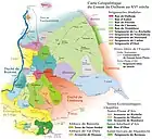 • Apart from a citizen soldiery, which has its own yearly events, there's other folklore in this village, like in many other villages in this region, on their separate festival days with a religious background. This festival, called the "Bronk", starts on a Sunday in June, July or August with a procession in which the priest carries the Blessed Sacrament through the streets of the village, which for that occasion are festively decked. A typical element of these processions is the fact that on multiple stops in their route temporary altars are built, in front of which flower carpets have been laid out.[2] When these piousnesses have ended around noon, two or three days of feasting follow. One folkloristic part of this event is the round dancing called "Cramignon", which also takes place in the streets, whereas the involved are moving from café to café, (but not to drink coffee).[3]