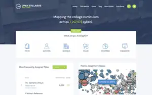In January 2016, the OSP launched a beta version of their "Syllabus Explorer," which they had collected data for since 2013. The Syllabus Explorer allows users to browse and search texts from over one million college course syllabi.[8] The OSP launched a more comprehensive version 2.0 of the Syllabus Explorer in July 2019. The newer version includes an interactive visualization that displays texts as dots on a knowledge map.[9][10] As of 2022, the OSP has collected over 7 million course syllabi.[11] The Syllabus Explorer represents the "largest collection of searchable syllabi ever amassed."[12]