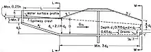 The United States Bureau of Reclamation (USBR) also uses the weir formula to quantify flow over a chute spillway. The USBR flow equation is:[5][6]