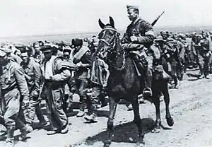 ![]() Romanian cavalryman escorting Soviet prisoners | |||||||