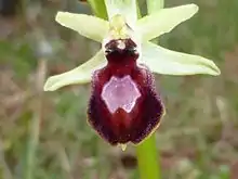 Ophrys × arachnitiformis, the false spider orchid, is an orchid native to Europe.[2] It is apparently a hybrid resulting from a cross between O. fuciflora × O. sphegodes, but has become established in the wild in Britain, France (including Corsica), Germany, parts of Italy (Liguria, Tuscany, Lazio, Apulia, Sicily, Sardinia), Austria, Switzerland, Hungary, and the former Yugoslavia.[1][3]