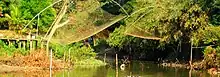 The metacercarial stage is infective to humans and other fish-eating mammals, including dogs, cats,[8] rats, and pigs.[22] Fish contain more metacercaria from September to February, before the dry season,[16] and this is when humans are usually infected.[1] Infection is acquired when people ingest raw or undercooked fish.[2] Dishes of raw fish are common in the cuisine of Laos and the cuisine of Thailand: koi pla, raw fish in spicy salad larb pla,[19] salted semifermented fish dishes called pla ra,[1] pla som[19] and som fak.[18] The natural definitive host is the leopard cat (Prionailurus bengalensis).[1] The young adult worm escapes from the metacercarial cyst in the upper small intestine and then migrates through the ampulla of Vater into the biliary tree, where it develops to sexual maturity over 4–6 weeks, thus completing the lifecycle.[2]
