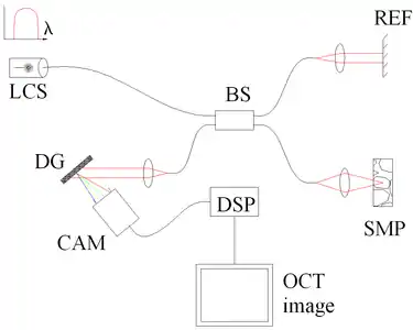 - ↑ Fercher AF, Hitzenberger CK, Kamp G, El-Zaiat SY (1995). "Measurement of intraocular distances by backscattering spectral interferometry". Optics Communications. 117 (1–2): 43–48. Bibcode:1995OptCo.117...43F. doi:10.1016/0030-4018(95)00119-S.