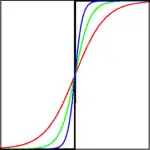 Instead of best response correspondences, some models use smoothed best response functions. These functions are similar to the best response correspondence, except that the function does not "jump" from one pure strategy to another. The difference is illustrated in Figure 8, where black represents the best response correspondence and the other colors each represent different smoothed best response functions. In standard best response correspondences, even the slightest benefit to one action will result in the individual playing that action with probability 1. In smoothed best response as the difference between two actions decreases the individual's play approaches 50:50.