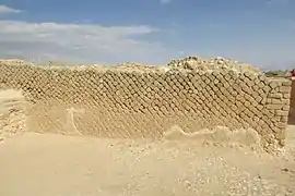 Opus reticulatum (also known as reticulate work) is a facing used for concrete walls in Roman architecture from about the first century BCE to the early first century CE.[1]:136–9 [notes 1] They were built using small pyramid shaped tuff, a volcanic stone embedded into a concrete core.[2]:75–6[3] Reticulate work was also combined with a multitude of other building materials to provide polychrome colouring and other facings to form new techniques.[4]:260–4[5]:189 Opus reticulatum was generally used in central and southern Italy with the exception being its rare appearance in Africa and Jericho.[1]:175[5]:189 This was because of tuff's wider availability and ease of local transport in central Italy and Campania compared to other regions.[2]:73–4[5]:189