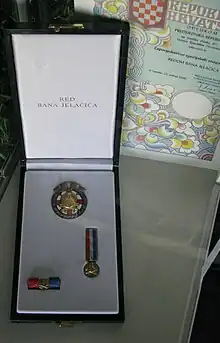 The Order of Ban Jelačić (Croatian: Red bana Jelačića) is the 10th most important medal given by the Republic of Croatia. The order was founded on April 1, 1995. The medal is awarded for excellence in the Armed Forces of the Republic of Croatia.[1] It is named after the ban of Croatia Josip Jelačić.
