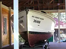 Further south outside Tillamook sits the Tillamook Air Museum, which is housed in one of the two former military blimp hangars of the former Naval Air Station Tillamook. The structure was originally known as "Hangar B" and was part of a pair of hangars built by the U.S. Navy in 1942.[47] "Hangar A" was destroyed by a fire in 1992. However, the concrete pilings that held the massive hangar doors erect still stand.