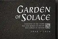 The Oregon Vietnam Veterans Memorial is an 8-acre (0.03 km2) outdoor war memorial dedicated to Oregonians who served in the Vietnam War. It is located in Portland, Oregon's Washington Park at 45°30′43″N 122°43′07″W / 45.5120°N 122.71857°W. The memorial was dedicated in 1987, inspired in 1982 by visits to the national Vietnam Veterans Memorial by five veterans and the parents of a Marine killed in Vietnam.[1] Landscape architecture firm Walker Macy of Portland designed the memorial,[2] while construction labor and materials were almost entirely volunteer donations.The font used in the memorial was created for the exclusive use of the Memorial. It was designed by Janis Price, and is called Hoyt, in recognition of the Arboretum.