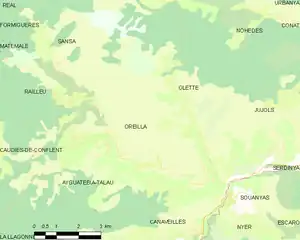 Map of Oreilla and its surrounding communes