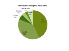 Worldwide, the organic market is headed by the United States, which holds 43% of global retail sales, followed by EU (38%), China (6%), Canada (4%) and Switzerland (3%).[12] In the United States the solid growth of organic food market is expected to continue until 2018, according to the new “United States Organic Food Market Forecast & Opportunities, 2018” (2013) that puts a compound annual growth rate of 14% on the sector.[13]