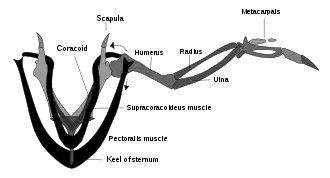 There has been debate about whether Archaeopteryx could really fly. It appears that Archaeopteryx had the brain structures and inner-ear balance sensors that birds use to control their flight.[144] Archaeopteryx also had a wing feather arrangement like that of modern birds and similarly asymmetrical flight feathers on its wings and tail. But Archaeopteryx lacked the shoulder mechanism by which modern birds' wings produce swift, powerful upstrokes (see diagram above of supracoracoideus pulley); this may mean that it and other early birds were incapable of flapping flight and could only glide.[137]