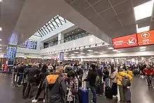 Orio al Serio International Airport,[3] also styled as Milan Bergamo Airport for commercial purposes,[4][5] (IATA: BGY, ICAO: LIME) is the third-busiest international airport in Italy.[2] The airport is also officially called Il Caravaggio International Airport after the Baroque painter Michelangelo Merisi da Caravaggio, who originally hailed form the nearby town of Caravaggio.[6] The airport is located in Orio al Serio, 3.7 km (2.3 mi) southeast of Bergamo and 45 km (28 mi) northeast of Milan. The airport is part of the airport network of the Milan metropolitan area, alongside Malpensa Airport and Linate Airport. The airport served almost 13 million passengers in 2018.