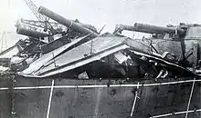 Aft main-gun turrets of Orion, about 1911 while fitting out