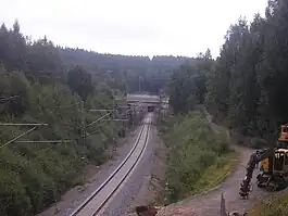 The railway in Muurame, with the Paasivuori tunnel in the background