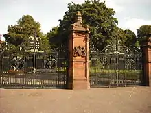 Ormeau Park is the city's oldest municipal park, dating back to 1871 and stretches from the Ormeau Road to the Ravenhill Road. It is also the home of Ormeau Golf Club. Outside the Park a cycle path has been added to the road.[15] The park was considered as an alternative venue for a new multi-purpose sports stadium, although First Minister Ian Paisley vetoed the plans.[16] Ormeau Park originally extended beyond its present Southern border taking in, what is now, Park Road, North Parade and South Parade. The original stone wall still exists and runs along the rear entry of the houses on the south side of the houses of South Parade. The wall can be seen where the entry opens out onto the Ormeau Road.