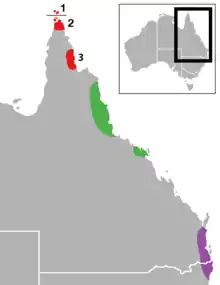 | Distribution of Ornithoptera euphorion (in green) and other species of Ornithoptera in Australia | |