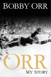 "Orr: My Story" is a 2013 autobiography written by Bobby Orr.[1] Orr is a former professional hockey player who played in the National Hockey League from 1966 to 1978. Orr played for two teams: the Boston Bruins and the Chicago Blackhawks. Considered one of the greatest players of all time, Orr's career was cut short by multiple knee injuries and surgeries. Orr was enshrined in the Hockey Hall of Fame in 1979 at age 31, the youngest to be inducted into the Hall at that time.[2][3] Orr is also recognized for being one of the first major sports figures to use an agent. Unfortunately, at the end of his career, Orr discovered that his agent, Alan Eagleson, had embezzled most of his money, leaving him deeply in debt.[4]