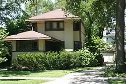 The Orth House is a historic house located at 42 Abbotsford Road in Winnetka, Illinois. Walter Burley Griffin designed the Prairie School house, which was built in 1908. Griffin was a student of Frank Lloyd Wright, and he designed the Orth House shortly after starting his own studio; the house consequently resembles Wright's work more closely than Griffin's later work does. The 1+1⁄2-story house's design features a stucco exterior with decorative stained wood, casement windows divided into geometric patterns, and an overall horizontal emphasis, all characteristic features of the Prairie School.[2]