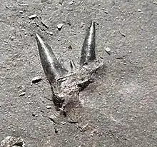 Orthacanthus and Triodus have a predator-prey relationship in which Orthacanthus preyed on Triodus.[13] Cranial remains of specimens of both Orthacanthus and Triodus from the Upper Carboniferous in Puertollano basin, Spain, give evidence of this predator-prey relationship.[13] Numerous and well preserved cephalic elements of Triodus were associated with the cranial remains of Orthacanthus, and is explained by the inclusion of occipital spines of Triodus in the buccal cavity of Orthacanthus.[13] Additional evidence is the co-occurrence of one Orthacanthus spine with many Triodus spines, which likely penetrated the soft tissue and cartilage of the mouth of Orthacanthus, similarly to modern sharks that feed on stingrays where the spines of stingrays have been found within and around the buccal cavities of Carcharhinus, Galeocerdo, Negaprion and Sphyrna.