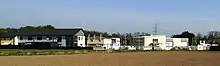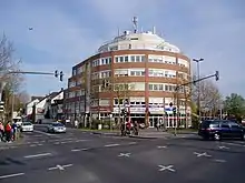 Despite massive citizen protests, the Cologne City Council decided in 2008 to build 640 residential units, 400 of which were to be integrated into apartment buildings. The citizens of Ostheim feared that the technical and social infrastructure of the district would not allow an influx of approximately 2,000 new citizens.[29] After several citizen hearings, the city of Cologne changed the development plan so that the foundation stone could be laid in the fall of 2012. The first apartment buildings were ready for occupancy in spring 2014. By 2018, 450 rental units, some of them subsidized with public funds, are to be built in mostly three-story apartment buildings, as well as up to 240 owner-occupied homes. Almost all streets were named after women who had a connection to the former state of Baden. The access road to the new development bears the name of the former Kalk district chairman Hans Offermann.[30][31][32][33]