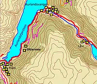 Otternes, a Norwegian linear - and cluster collective farmyard midway between Aurland and Flåm in Vestland county. The farmyard consists of 27 buildings.