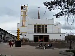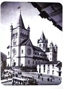 The current building is contemporary in design and replaced the previous Romanesque-Gothic style granite building,[3] which was demolished after a strong earthquake on July 30, 1962, caused it serious damage.[4]