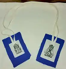 In the United States the National Shrine to Our Lady of Walsingham for the Episcopal Church (part of the Anglican Communion) is located in Grace Church, Sheboygan, Wisconsin, and for the Catholic Church at Saint Bede's Church, Williamsburg, Virginia. The personal ordinariate established for former Anglicans in England and Wales is named for Our Lady of Walsingham. The cathedral of the Personal Ordinariate of the Chair of St. Peter in Houston, Texas, is named for Our Lady of Walsingham. The Catholic national shrine of Our Lady of Walsingham is a separate chapel that belongs to the parish of St. Bede's Church in Williamsburg, Virginia.[18] Western Rite Antiochian Orthodox parish named for Our Lady of Walsingham is in Mesquite, Texas. There is a blue Anglican devotional scapular known as the Scapular of Our Lady of Walsingham.