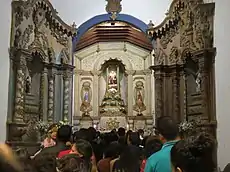The religious traditions of the Week of Sorrows and the Feast of the Steps have been held during Lent since the 18th century by the local brotherhoods and confraternities, and with the extinction of these, the celebration was taken over by the Blessed Sacrament. Until mid 1940, on every Friday of Lent, there was a mass celebrated in the Church of Bonfim, where the choir and orchestra performed the Sorrows Motets attributed to Basílio Martins Braga Serradourada (1804-1874), as part of the celebrations of the Feast of the Steps.[42][43][44] However, the festivities of the Steps were paralyzed between the penultimate and last Friday before the Holy Week for the Week of Sorrows, and in it, the celebration of the Septenary of Sorrows, which was a paraliturgy that, for seven days, commemorated the meditation of the seven sorrows of Mary. It was held at the altar of Saint Francis of Paola in the Mother Church, where the image of the Sorrows was placed, and was prayed over by the vicar, who exposed the Blessed Sacrament there for the recitation of prayers, and accompanied by the Choir and Orchestra that performed a repertoire in Latin and Portuguese, with compositions by composers from Goiás.[45]