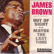 "Out of Sight" was the third single Brown recorded for Smash Records in the midst of a contract dispute with his main label, King. A significant pop hit, it reached #24 on the Billboard Hot 100,[3] and #5 on the Cashbox R&B chart.[4] (Billboard had temporarily suspended its R&B listings at the time.) It was also the last song he would record for over a year, as the court's ruling in his dispute with King barred him from making vocal recordings for Smash.