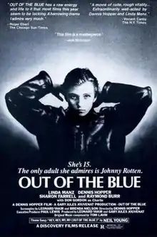 Out of the Blue (released in Canada as No Looking Back)[1] is a 1980 drama film directed by Dennis Hopper, and starring Linda Manz, Hopper, Sharon Farrell, Don Gordon, and Raymond Burr. The film was produced by Leonard Yakir and written by him and Brenda Nielson. Its plot follows a troubled and rebellious teenage girl living in the Pacific Northwest with her dysfunctional mother and alcoholic father. The title is taken from the Neil Young song "My My, Hey Hey (Out of the Blue)", which is also featured in the film.