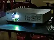 A projector is a display that projects the computer image onto a surface through the use of a high power lamp. These displays are seen in use to show slideshow presentations or in movie screenings.[4]